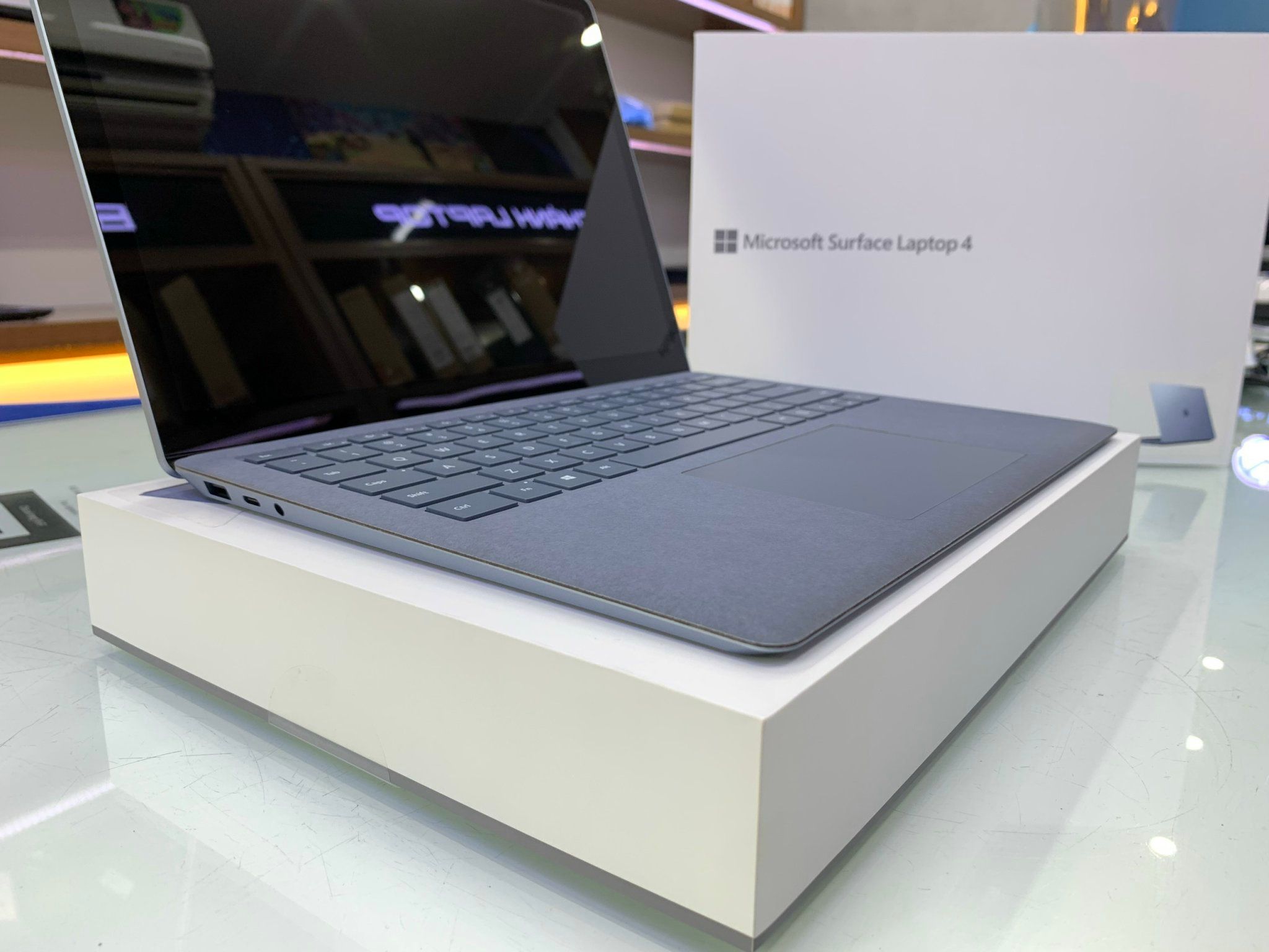 Số lượng cổng kết nối trên Surface Laptop 4 cũng không thay đổi quá nhiều so với thế hệ tiền nhiệm. Máy vẫn đi kèm với 1 cổng USB-A, 1 cổng USB-C, 1 cổng cắm tai nghe 3.5 mm ở bên trái. Bên phải của máy là nởi đặt cổng Surface Connect độc quyền (sử dụng với sạc 65 W hoặc mở rộng bằng Surface Dock).